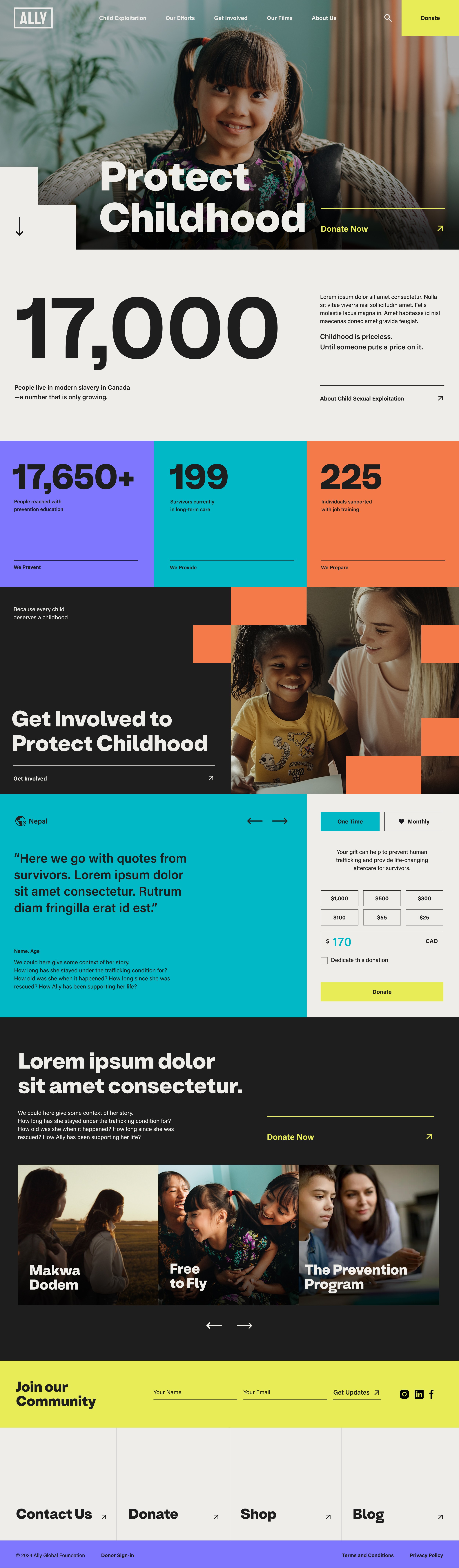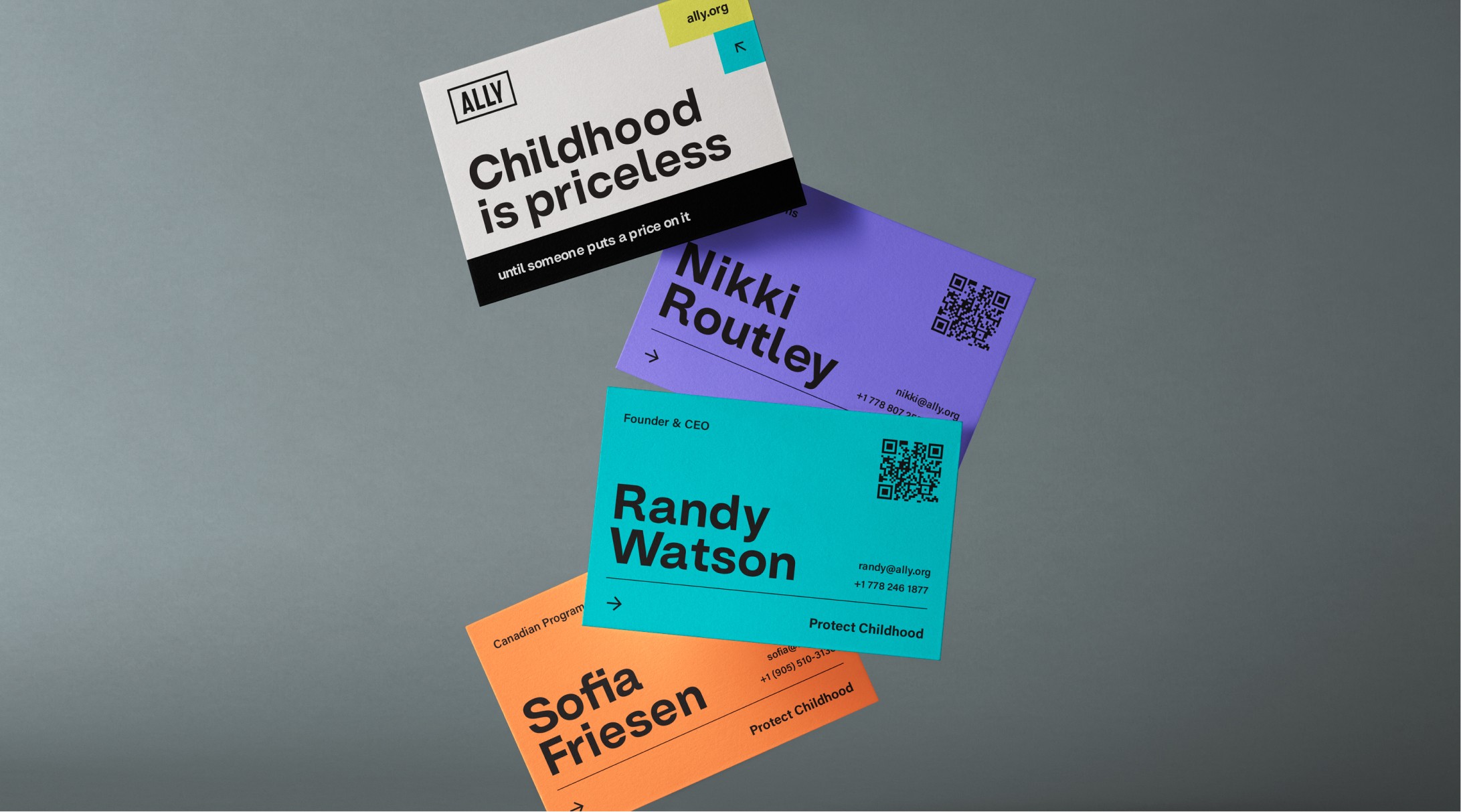 Large-scale statements such as "Protect Childhood" operate seamlessly within the system — reinforcing clarity and conviction.