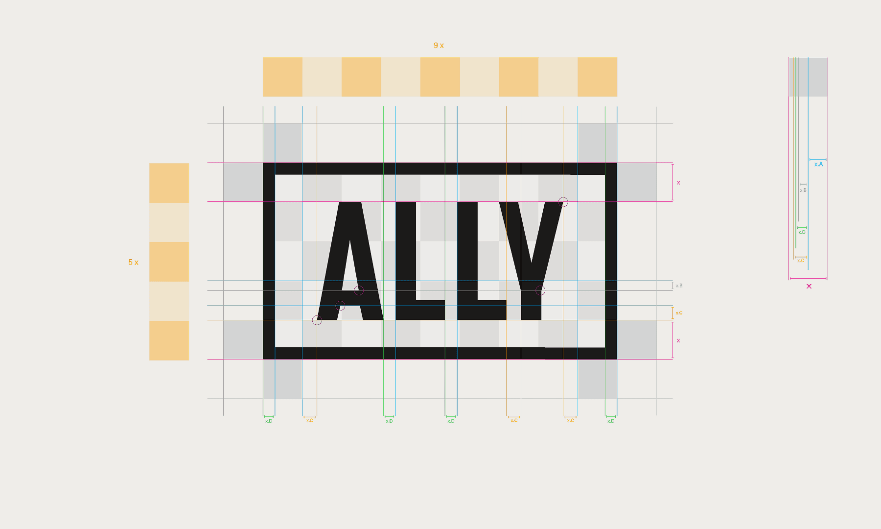A disciplined, pixel-based grid forms the structural backbone of the identity.
