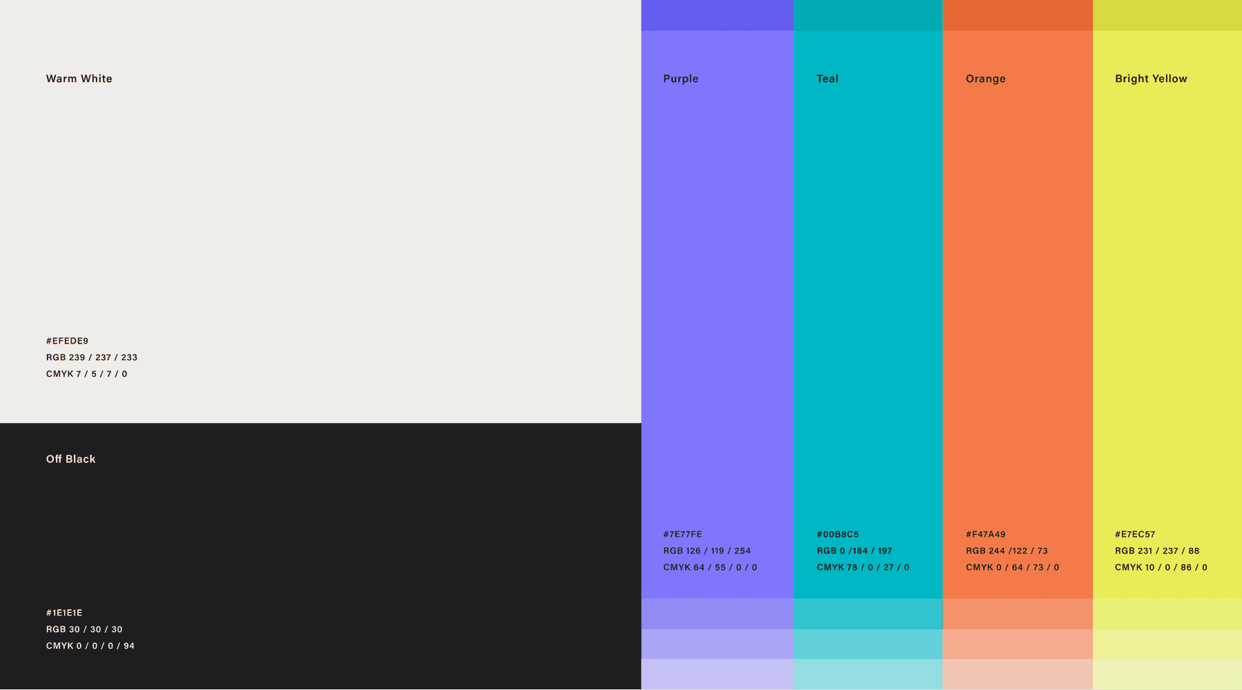 The previous aqua was retained to preserve brand equity and visual recognition. Purple was lightened to match the system’s vibrancy. Yellow, previously program-specific, became part of the core palette. A new orange introduced additional expressive flexibility.