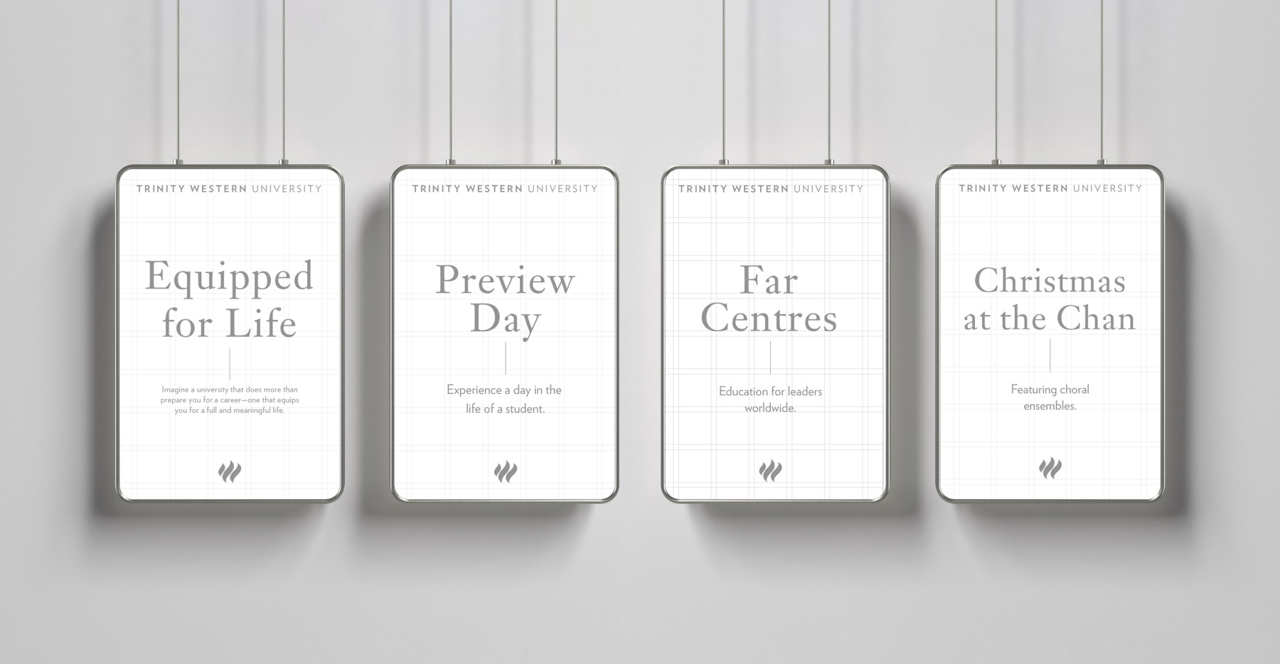 This work established a unified visual foundation for Trinity Western University—aligning mission, promise, identity and expression into one cohesive system.